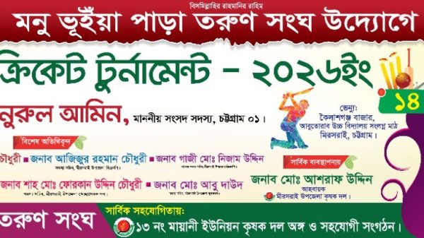 মিরসরাইয়ে মনু ভূঁইয়া পাড়া তরুণ সংঘের উদ্যোগে ডে-নাইট ক্রিকেট টুর্নামেন্ট অনুষ্ঠিত